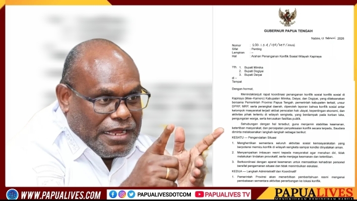 NABIRE – Gubernur Papua Tengah, Meki Nawipa, secara resmi mengeluarkan surat arahan penting terkait penanganan konflik sosial di wilayah Kapiraya (Mee-Kamoro) dengan nomor 200.1.3.4/195/SET/2026. Tanggal 13 Februari 2026.
