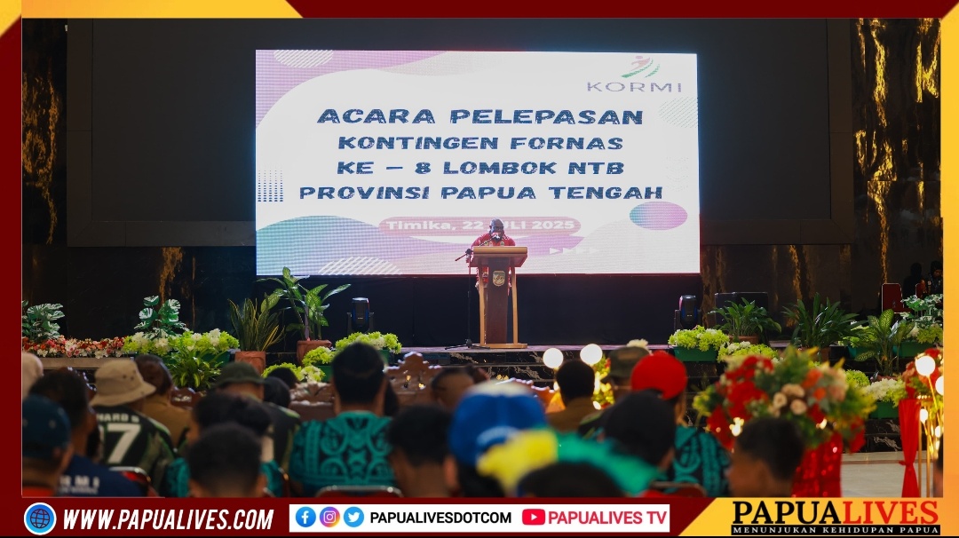 MIMIKA – Gubernur Papua Tengah, Meki Nawipa, secara resmi melepas keberangkatan 370 kontingen Komite Olahraga Masyarakat Indonesia (Kormi) Papua Tengah. Selasa (22/7/2025) Pelepasan peserta tersebut berlangsung Gedung Eme Neme Yaware Timika.