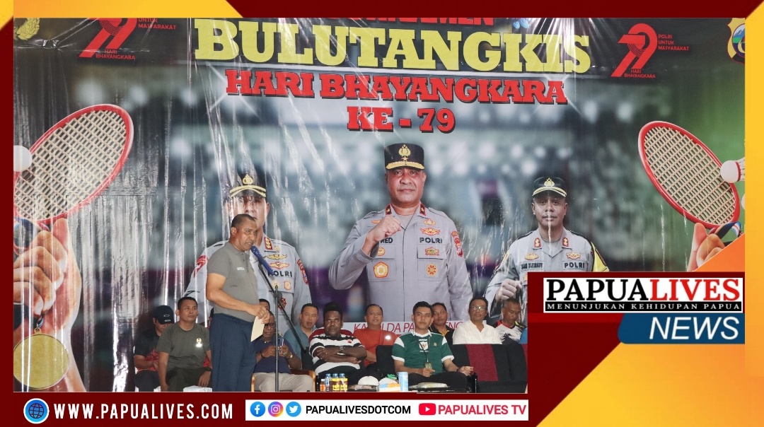 NABIRE — Kapolda Papua Tengah, Brigjen Pol. Alfred Papare, S.I.K., secara resmi membuka Turnamen Bulutangkis dalam rangka memperingati Hari Bhayangkara ke-79 Tahun 2025, yang dilaksanakan pada Senin, 7 Juli 2025, di Lapangan GOR Kotalama, Kelurahan Morgo, Kabupaten Nabire, Provinsi Papua Tengah.