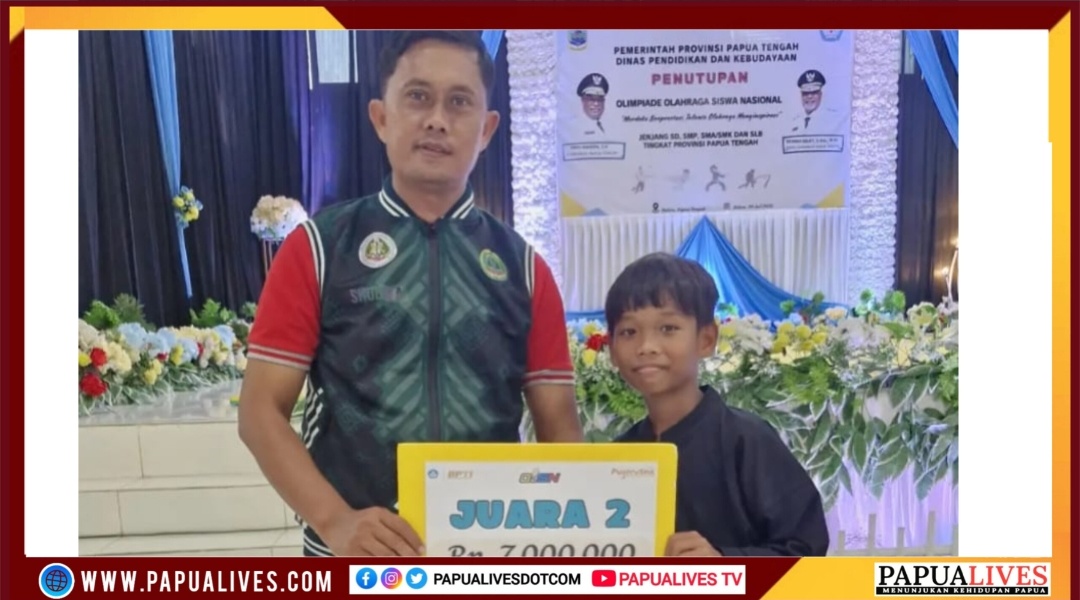 NABIRE – Prestasi membanggakan kembali diraih pesilat cilik binaan PERSINAS ASAD. Dalam ajang Olimpiade Olahraga Siswa Nasional (O2SN) tingkat Sekolah Dasar se-Papua Tengah, Kaka Sean Asyraf, siswa SD Inpres Koperapoka, Kabupaten Mimika, berhasil menyabet juara dua kategori seni tunggal baku cabang pencak silat. Rabu (29/07/2025) di Nabire